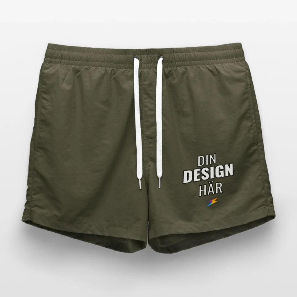 - Moderna, lårlånga badbyxor med dragband och två sidofickor